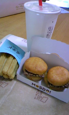 ちゃんとしたハンバーガーのセットだけどでもお腹にはたまらないね(笑);