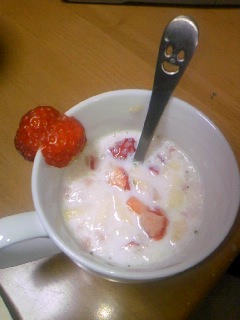 春ですね(´▽`)ノ そんなわけで今日は苺ぱぁ~りぃ~をしましたv もちろんそのままでもいっぱい食べたんですが、私のお気に入りがこちら! ハルカ先生特性 苺牛乳ですv ちなみにポカポカなHOTです(^^) そして和みの甘々ですv 今回は中にリンゴも入っていたので苺リンゴ牛乳です☆ 寒い時期にはこれがたまらないのです(´・ω・`) 先生!また作ってください、待ってますv 苺はうちのハムたちにも大人気☆ スモもタケも嬉しそうに食べてました(^^) こちら→は苺とタケシ☆ かわいいですv